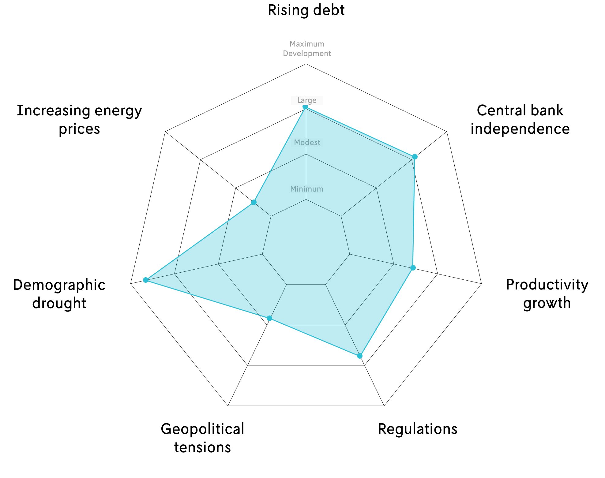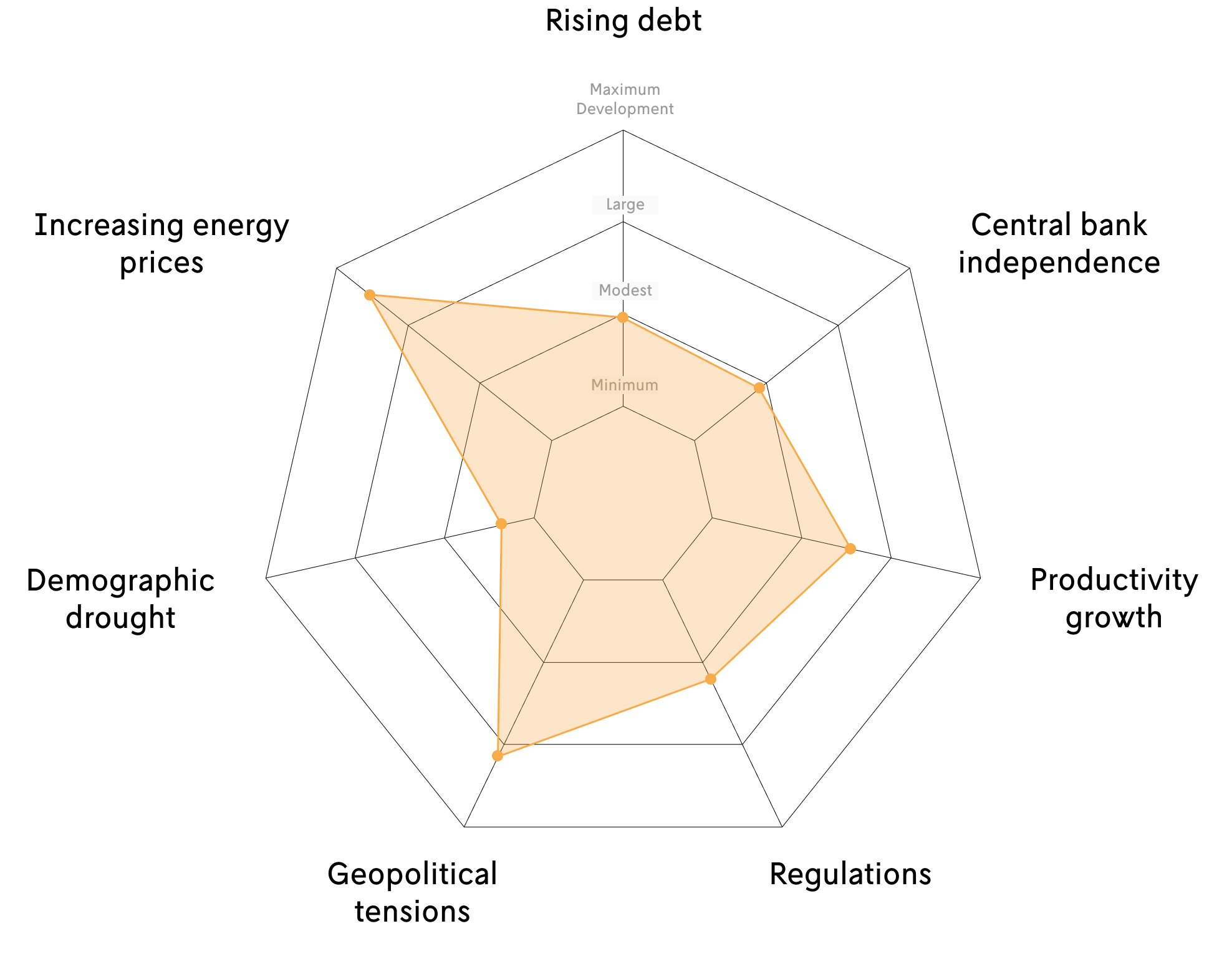 In a global climate marked by instability and deficient monetary policies, inflation spirals out of control. As superpower rivalry intensifies, a weakening dependency ratio and stagnant productivity growth increase debt levels. Prices for essential commodities and raw materials—such as fertilizers, grain, and oil—skyrocket. Despite the surging inflation, central banks find themselves unable to raise interest rates adequately due to political pressures and mounting debt.